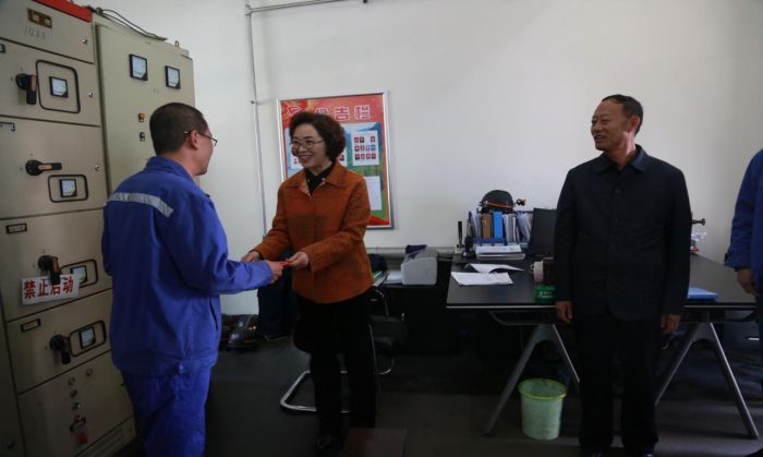 張立新主席詳細(xì)詢問了王建勤同志的身體、生活和工作情況,向他表達(dá)了黨和政府的親近關(guān)懷,對(duì)他愛崗敬業(yè),無私奉獻(xiàn)的精神表示崇高敬意。并對(duì)車間的防塵、防護(hù)等方面采取措施進(jìn)行詢問。公司黨委副書記、工會(huì)主席張永同志對(duì)公司情況進(jìn)行了介紹,并鼓勵(lì)王建勤在以后工作中繼續(xù)發(fā)揮勞模精神,做廣大員工的表率。