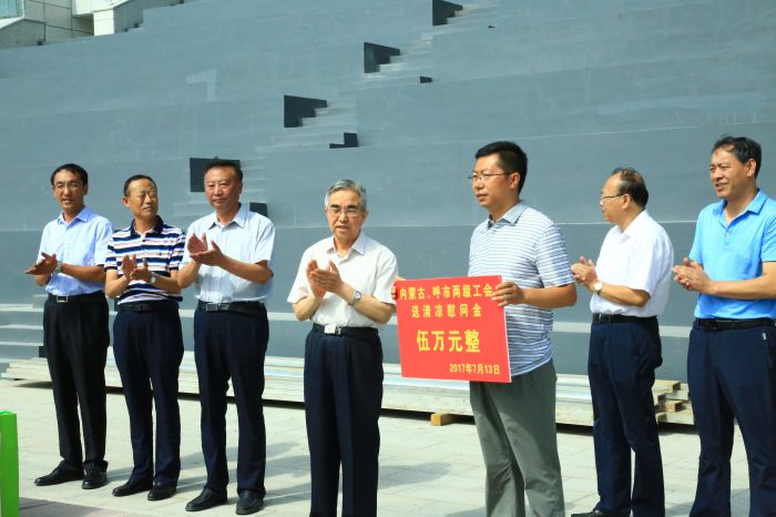 7月13日,內(nèi)蒙古自治區(qū)人大常委會副主任、總工會主席杭桂林,呼和浩特市政府副巡視員、黨組成員劉敏,市人大常委會副主任、總工會主席斯欽畢力格等一行向奮戰(zhàn)在我市重大項目重點工程內(nèi)蒙古少數(shù)民族群眾文化體育運動中心一線施工現(xiàn)場的工作人員進行送清涼慰問,發(fā)放5萬元慰問金,表達了兩級政府對我市重大項目重點工程一線單位職工的深切問候和關懷。城發(fā)公司董事長、黨委書記張瑞平,黨委副書記、工會主席張永等領導陪同。文\陳柯羽