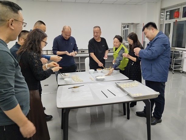 集團公司領(lǐng)導(dǎo)在員工食堂和大家一起包餃子、聊家常、迎新年,歡聚一堂、其樂融融。大家卷起袖子、相互配合,從和面、搟皮、填餡到包口,每道工序都做得格外認真,每個餃子充滿了溫暖愛意,大家一邊包著餃子,一邊互致問候,還不時地交流春節(jié)風(fēng)俗、烹飪經(jīng)驗,真摯的祝福不絕于耳,歡聲笑語余音繞梁,很快一個個飄著香氣的餃子煮熟出鍋,一盤盤熱氣騰騰的餃子送到值班人員手中。
